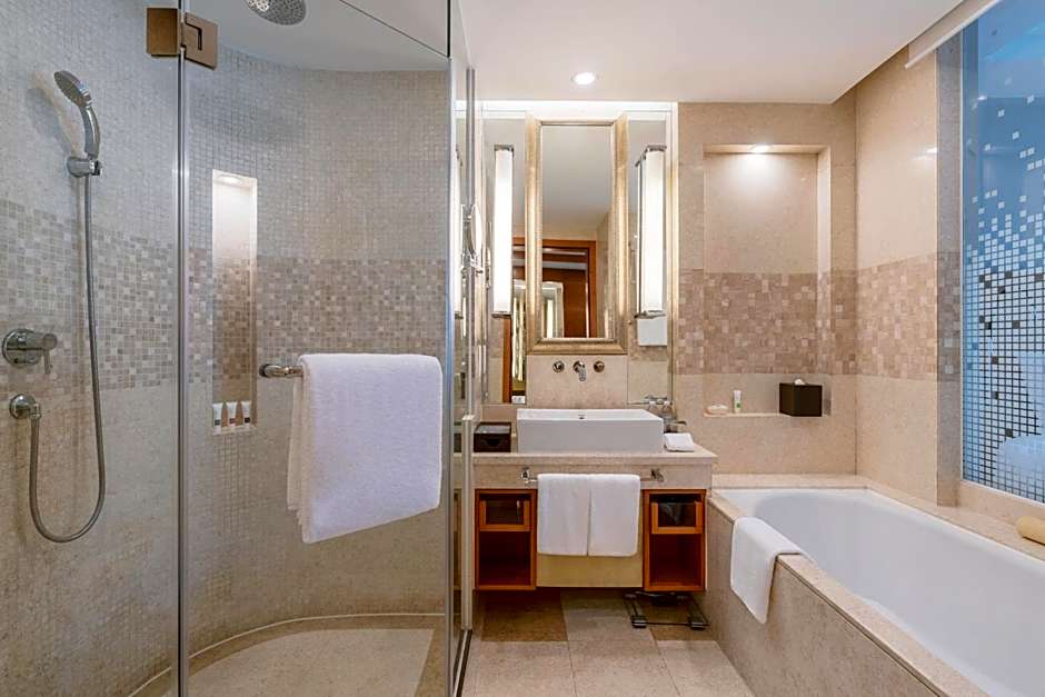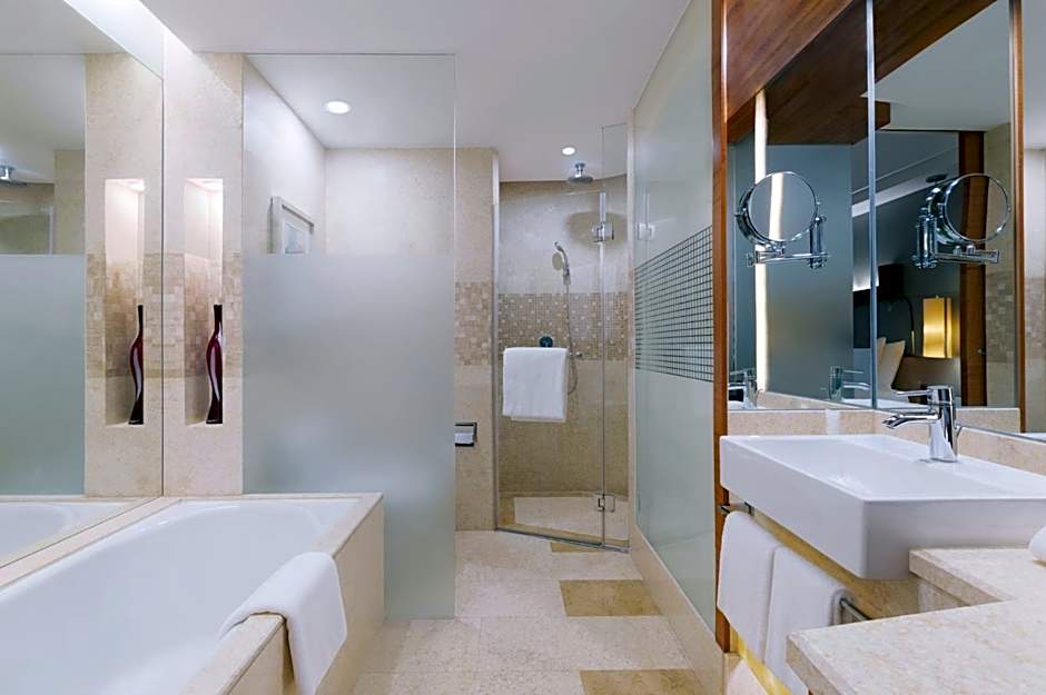 This spacious suite consists of 1 living room, 1 separate bedroom and 1 bathroom with a bath and free toiletries. The air-conditioned suite provides a flat-screen TV with satellite channels, a mini-bar, executive lounge access and a coffee machine. The unit offers 1 bed.